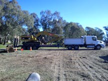 A low loader is a trailer attached to a prime mover used to haul equipme...